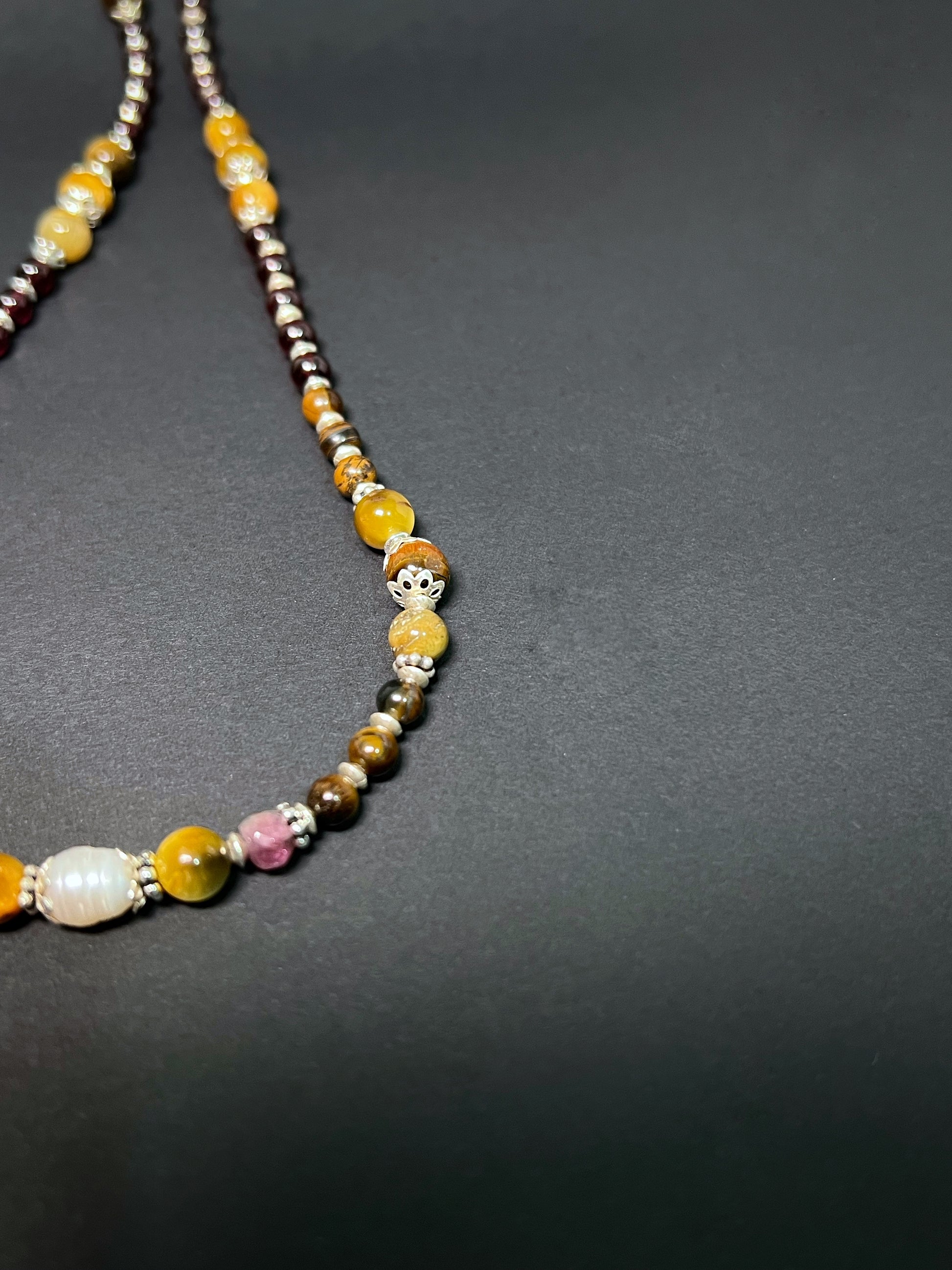 Garnet & Tiger eye gives the mood of the dry desert, and Pearl is there to remind us how gentle nature can be.